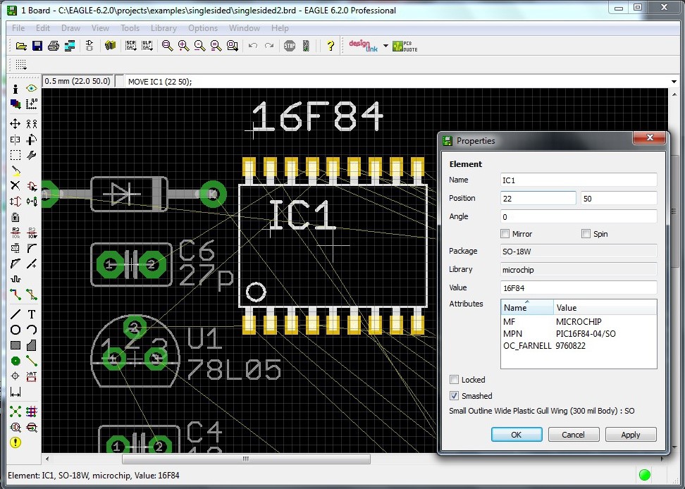 3. To move a component to a defined position, use the command line. Type in, for example: MOVE IC1 (22 50) and hit the Enter key. This will move IC1 to the given location.